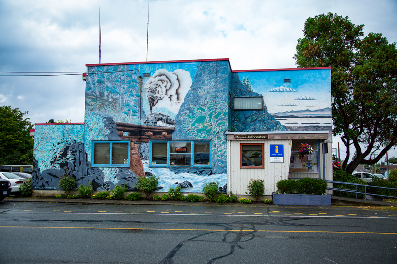 Originally created for the side of the Chemainus Visitors Centre in 1982, the well-loved mural disappeared from view when the building was completely demolished by February of 2016 to make room for a new library.