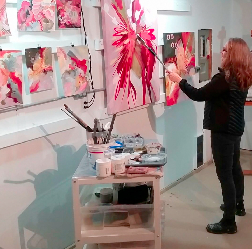 Angela Carlson, is a visual artist based in Shawnigan Lake, BC. She’s interested in both abstract and representational painting, with acrylic paint as her preferred medium. She has a BFA from Emily Carr University of Art and Design and is constantly learning from and inspired by the creativity and drive of other artists. Angela is also a scenic painter and project manager for theatre and film. She uses the large scale painting and planning skills and techniques she developed and learned as a scenic painter to create colourful murals. Prior to her work as a scenic artist in Metro Vancouver and on Vancouver Island, she was a potter and ceramic artist in Northern and Central BC.