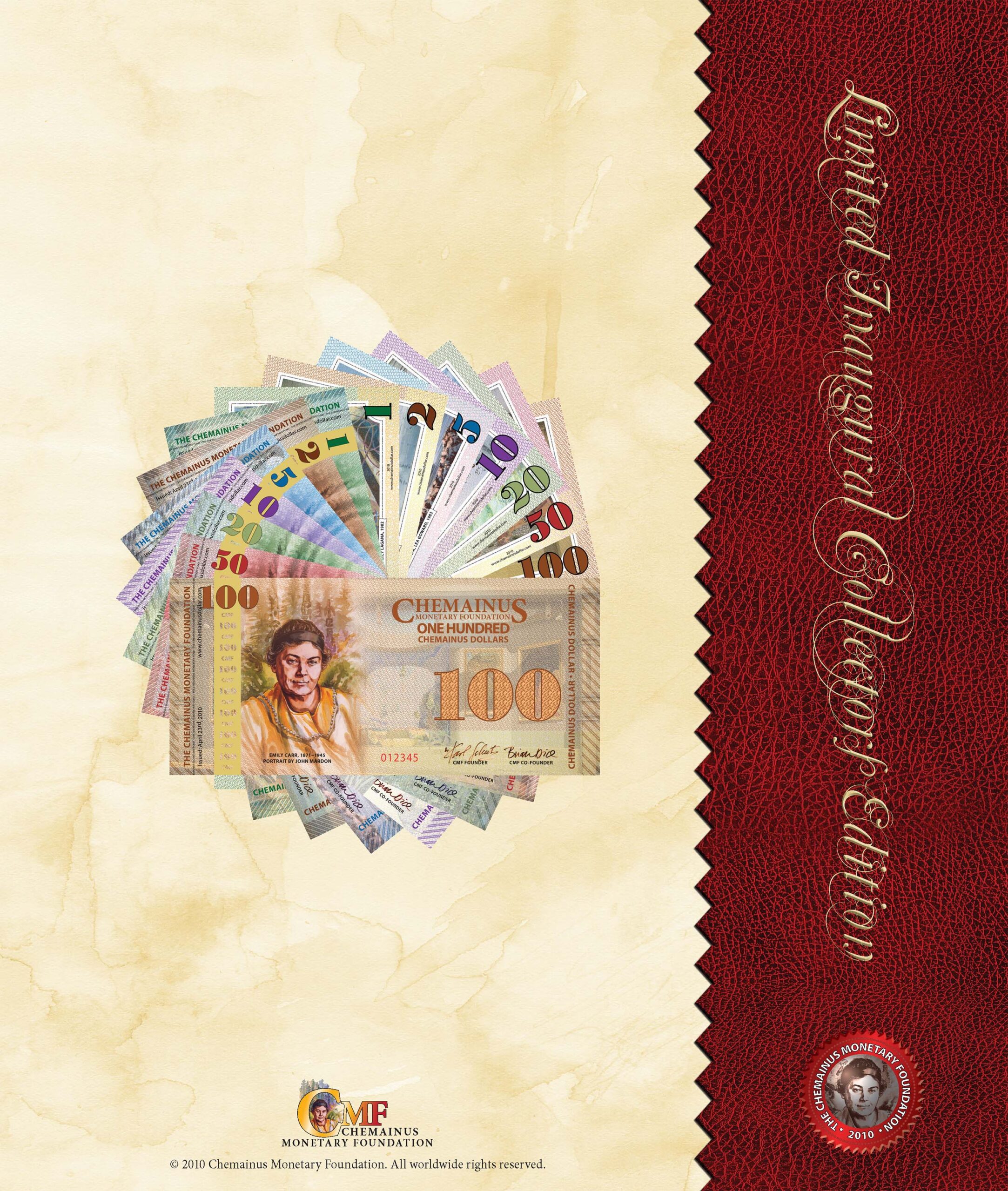 An Artist’s Proof is a unique item for a collector. This comes with a complete set of uncirculated Chemainus currency with same serial numbers – $1,$2 $5 10 $20 $50.